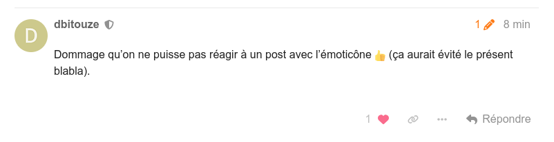 Dommage qu’on ne puisse pas réagir à un post avec l’émoticône